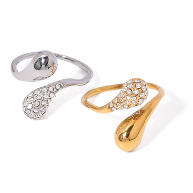 1 Piece Simple Style Droplet Shape Stainless Steel Gold Inlay Rhinestones Women's Adjustable Rings