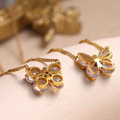 1 Piece Romantic Series Gorgeous Butterfly Shape Stainless Steel Gold Color Lightweight Women's Pendant Necklaces h5Picture8